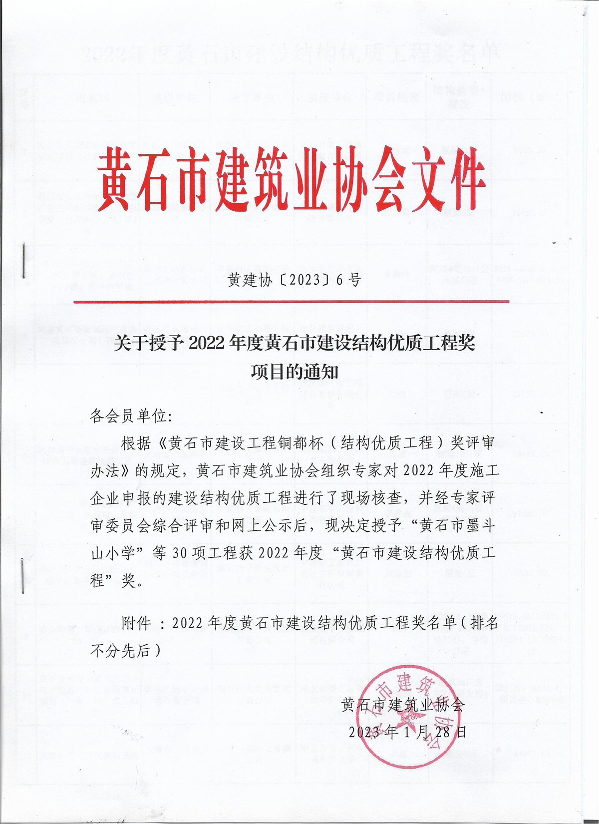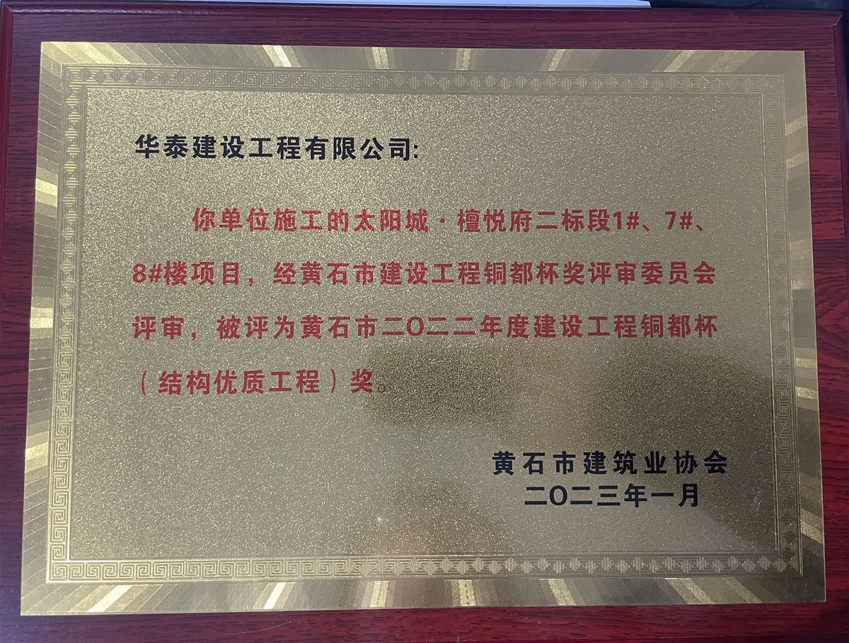 近日,在南昌市住房和城鄉(xiāng)建設(shè)局發(fā)布的《關(guān)于2022年下半年建設(shè)工程質(zhì)量管理標(biāo)準(zhǔn)化示范工地的通告》、黃石市建筑業(yè)協(xié)會(huì)發(fā)布的《關(guān)于授予2022年度黃石市建設(shè)結(jié)構(gòu)優(yōu)質(zhì)工程獎(jiǎng)項(xiàng)目的通知》中,經(jīng)各屬地工程質(zhì)量監(jiān)督部門推薦和專家評(píng)價(jià),由華泰建設(shè)工程有限公司承建的“南水大廈”項(xiàng)目與“太陽(yáng)城·檀悅府二標(biāo)段1#、7#、8#樓”項(xiàng)目分別榮獲南昌市“2022年下半年建設(shè)工程質(zhì)量管理標(biāo)準(zhǔn)化示范工地”、“黃石市2022年度建設(shè)工程銅都杯(結(jié)構(gòu)優(yōu)質(zhì)工程)獎(jiǎng)”。建設(shè)工程質(zhì)量標(biāo)準(zhǔn)化示范工地評(píng)比是考核參建單位質(zhì)量管理水平的重要標(biāo)準(zhǔn)之一,同時(shí),建設(shè)工程銅都杯(結(jié)構(gòu)優(yōu)質(zhì)工程獎(jiǎng))代表了建筑工程結(jié)構(gòu)施工質(zhì)量的高水平,也是精品工程的重要標(biāo)志。獲此兩項(xiàng)殊榮,是對(duì)華泰建設(shè)項(xiàng)目施工水平及安全質(zhì)量管理的充分肯定,彰顯了華泰建設(shè)在工程項(xiàng)目管理、工程品質(zhì)等領(lǐng)域的卓越實(shí)力。