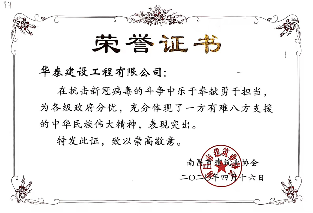 首頁(yè) > 關(guān)于華泰 > 企業(yè)榮譽(yù) > 榮獲2020年抗擊疫情榮譽(yù)證書